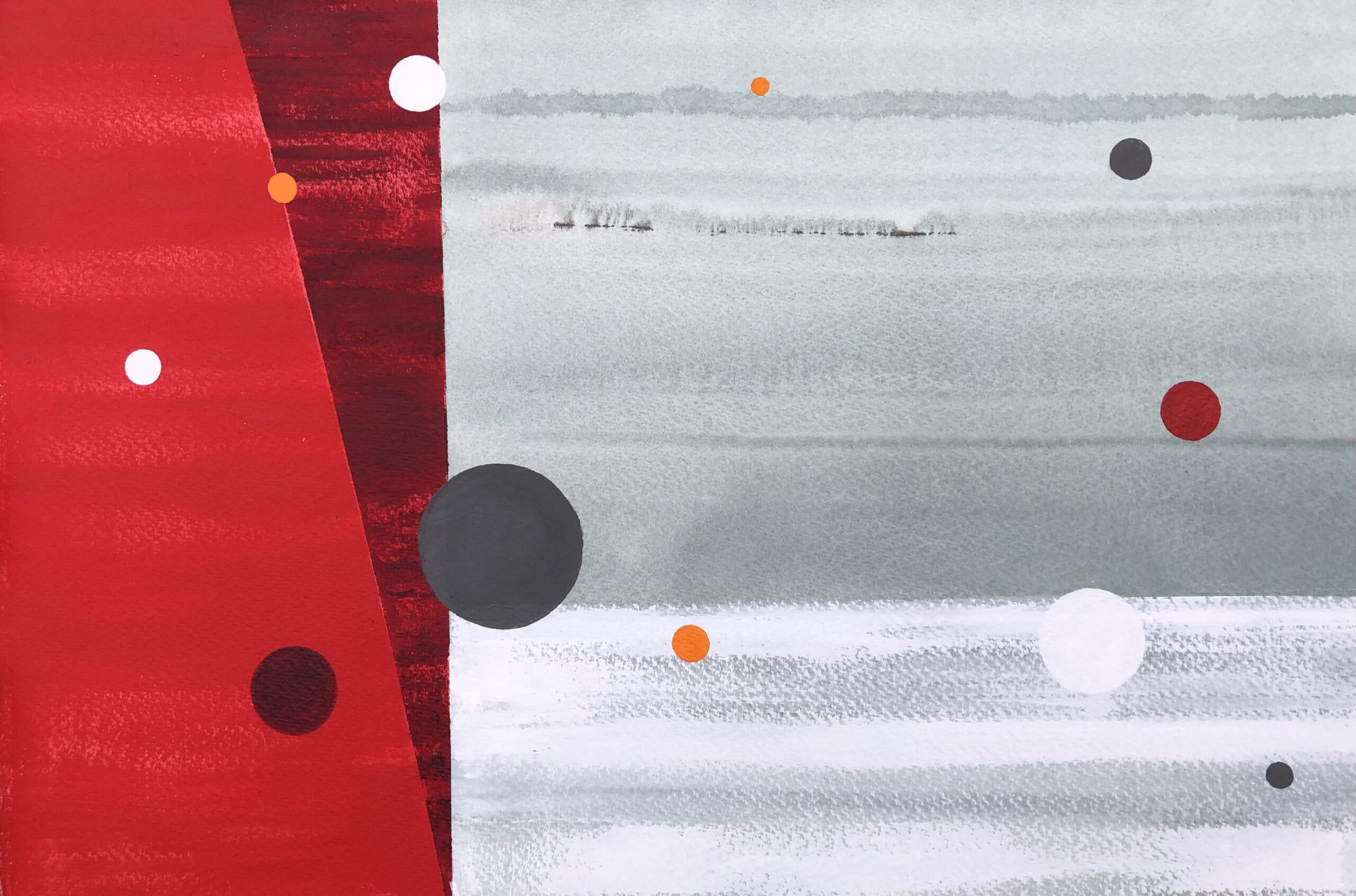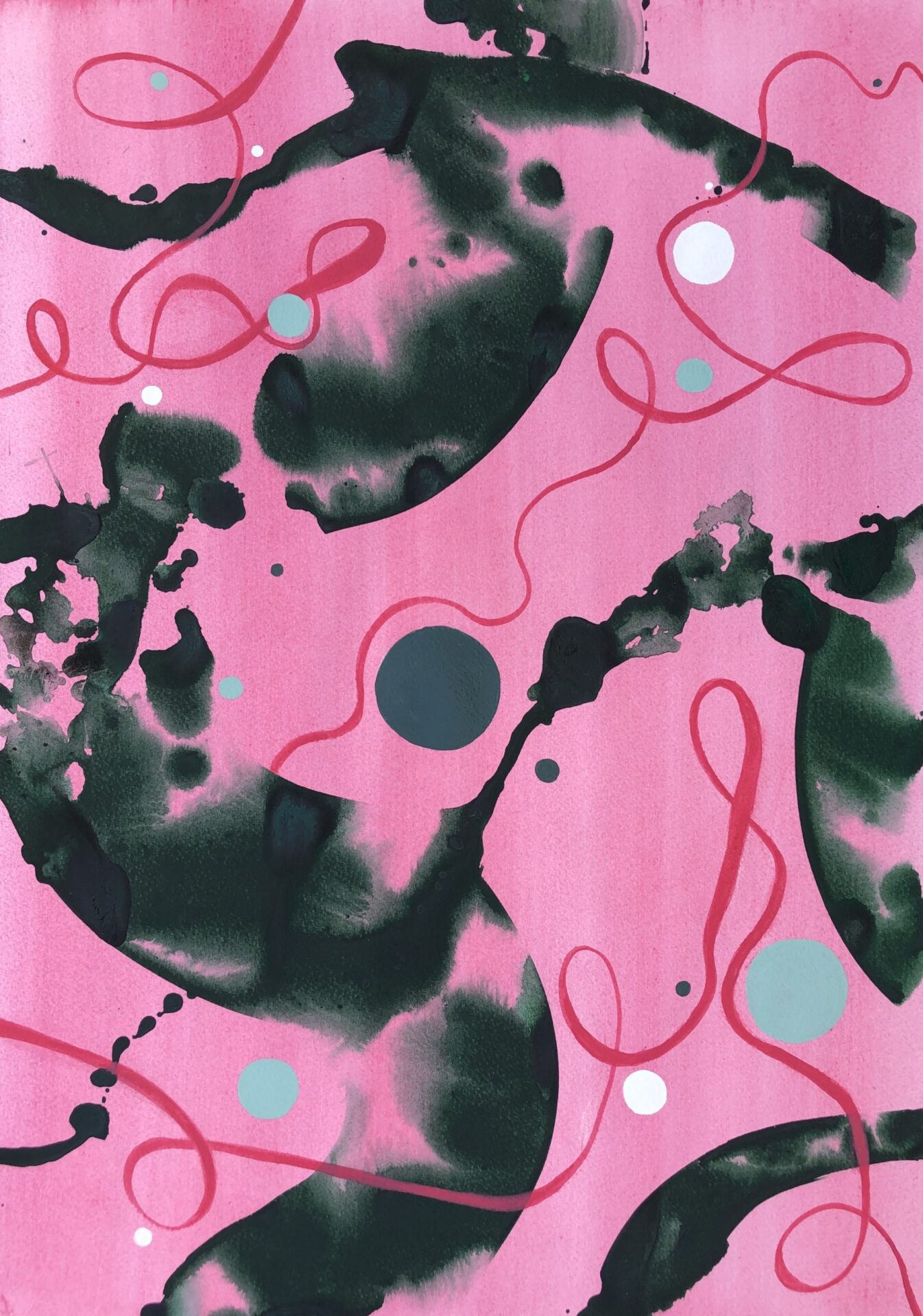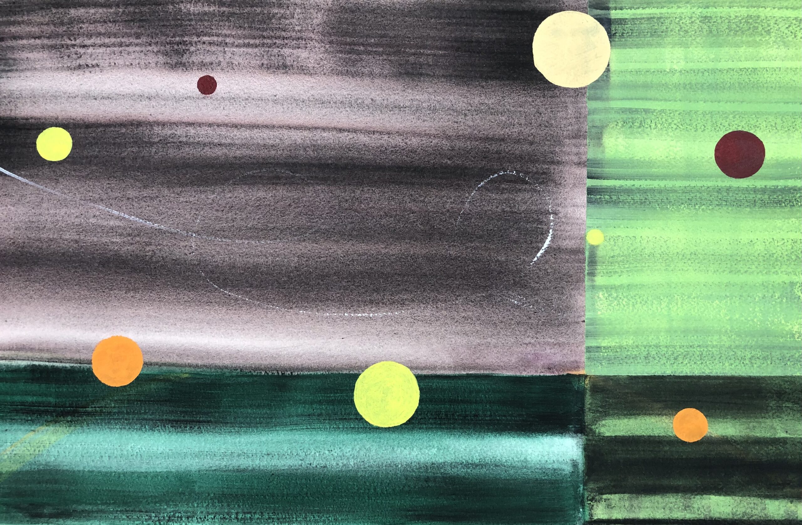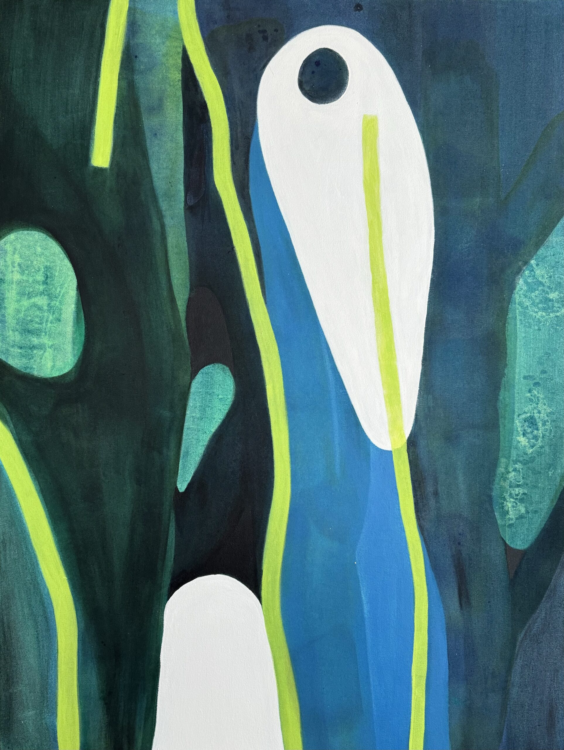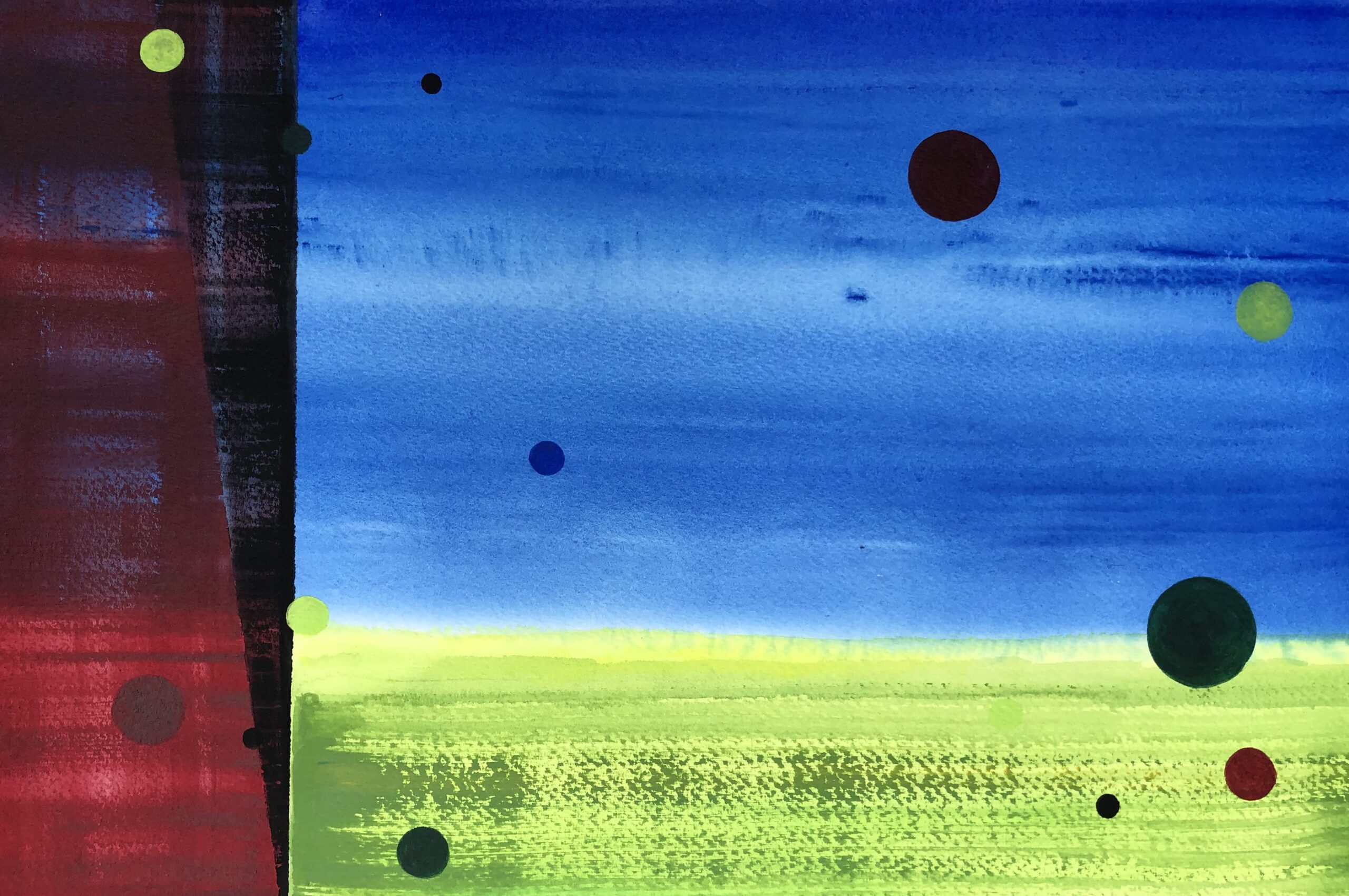 This painting is in acrylic and interference paint on watercolour paper. It evokes wonderment.