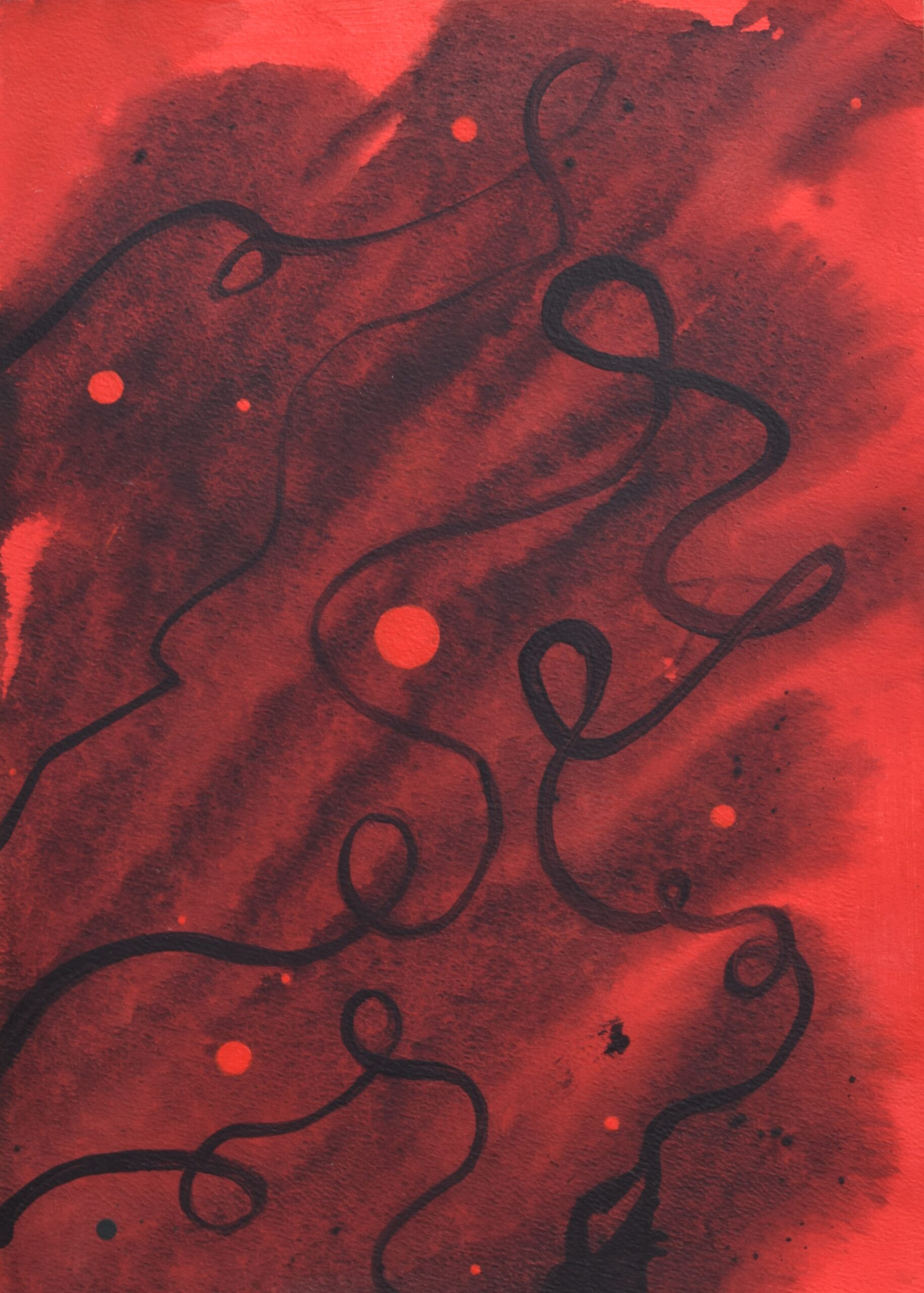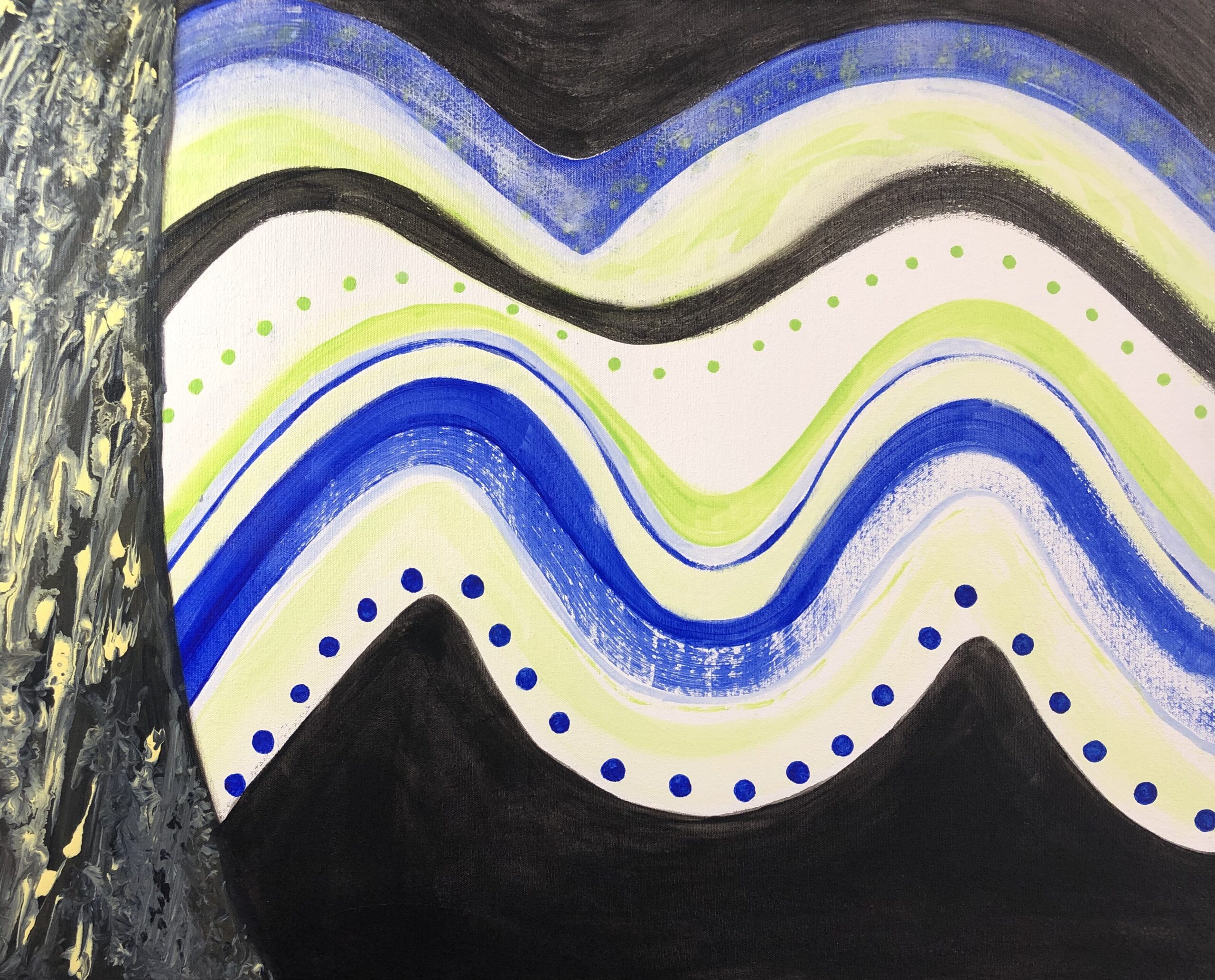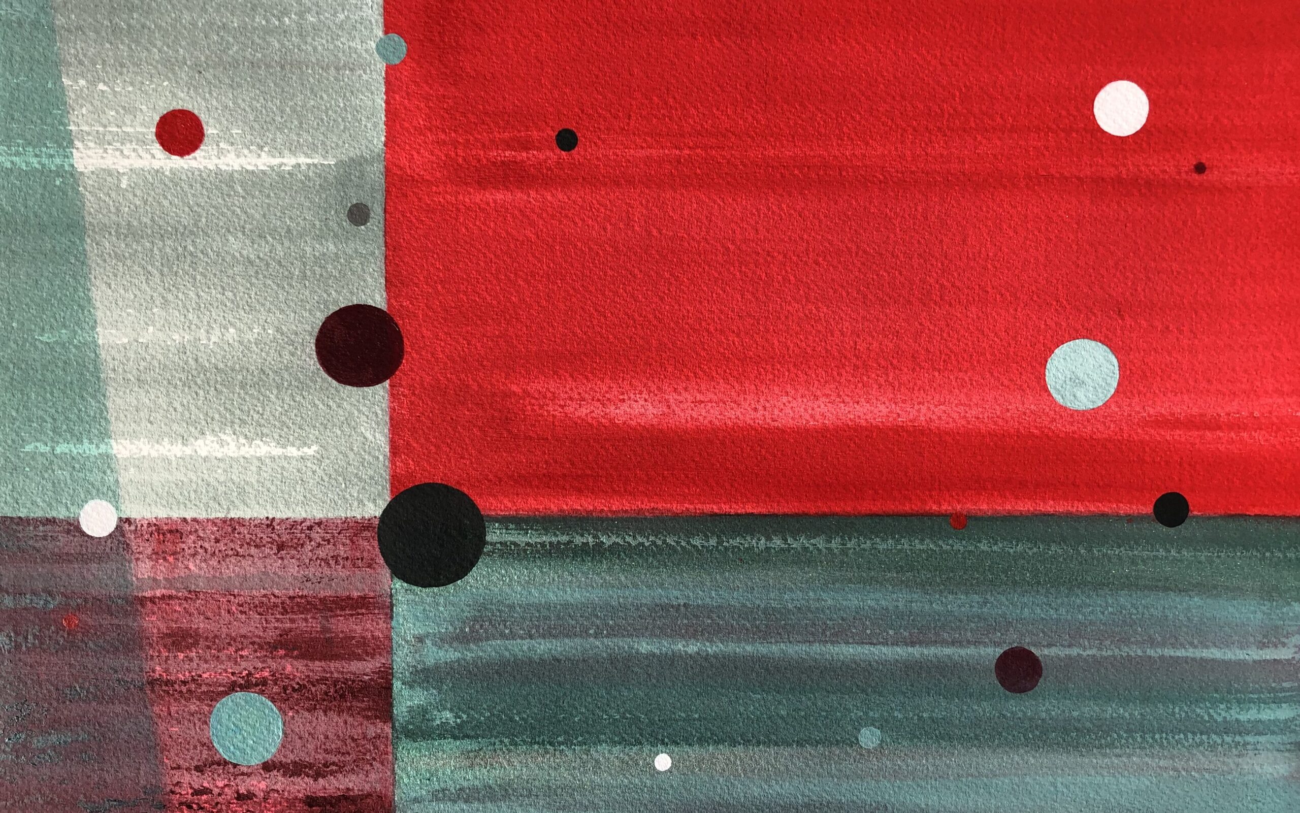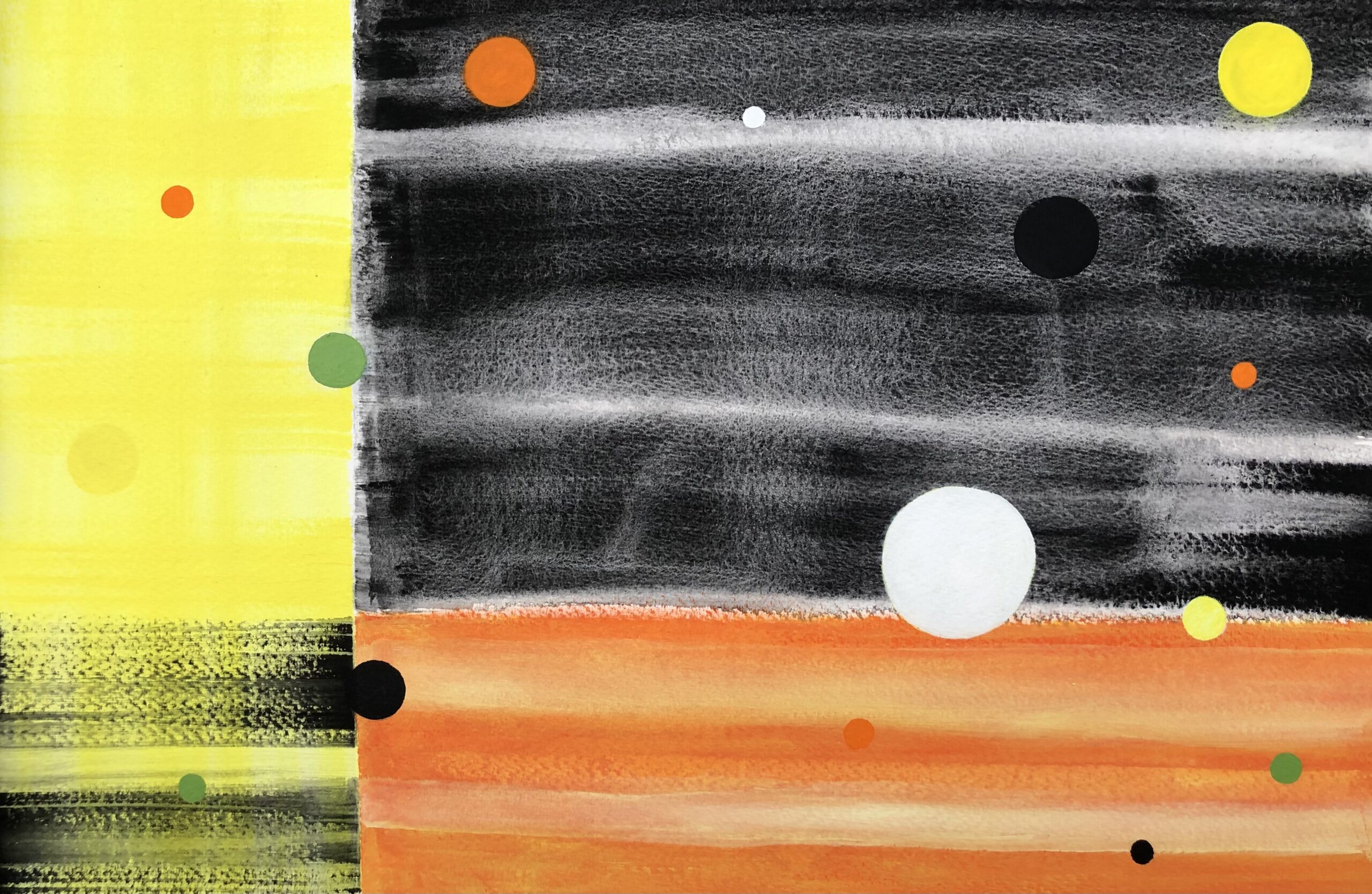 This painting is in acrylic and interference paint on watercolour paper. It evokes wonderment.