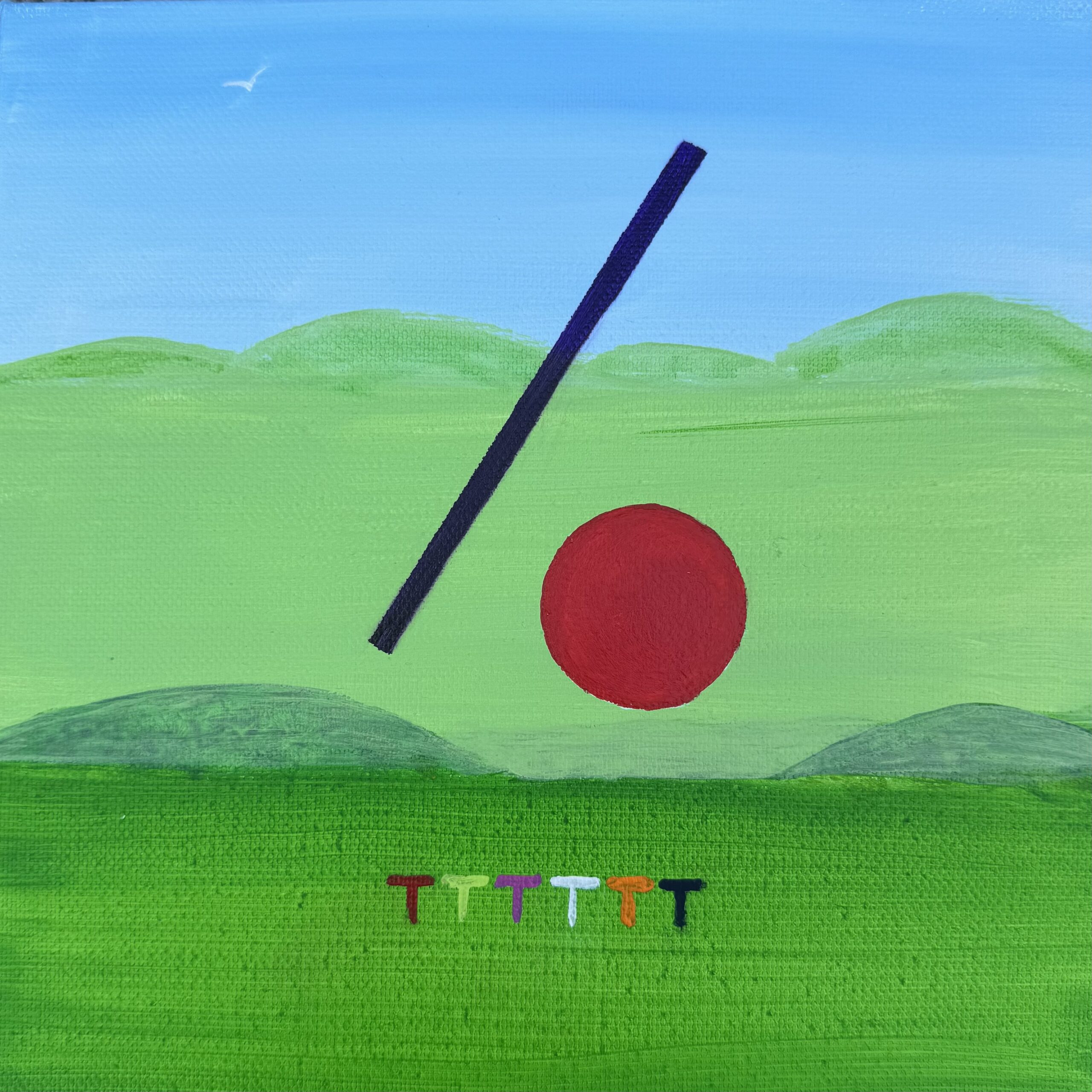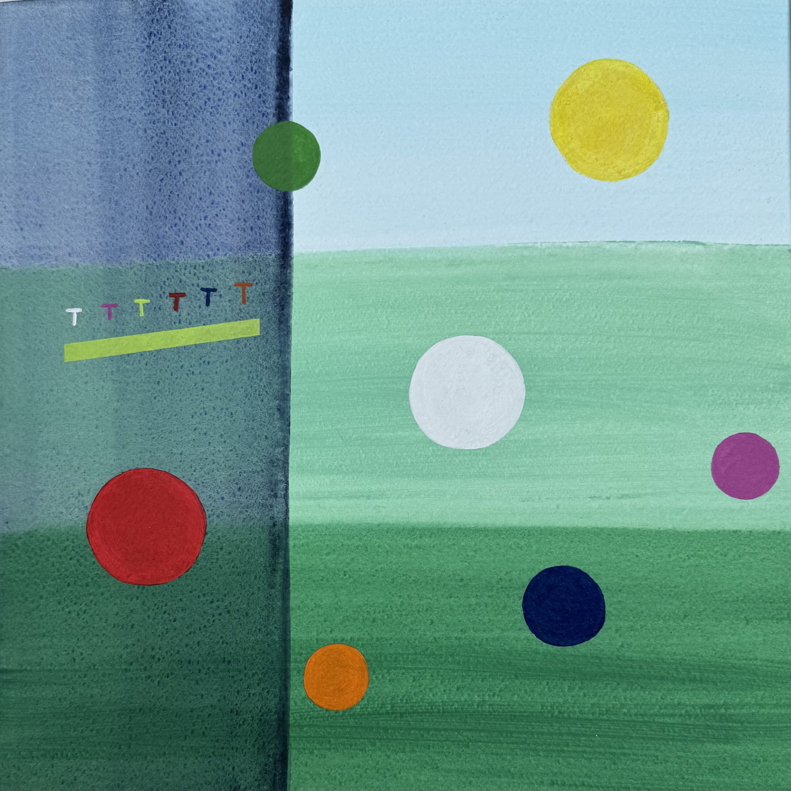 The inspiration from a heavy dew on the fairway grass at the start of a winter’s day on my local golf course. When golf balls flew through the air to land in the watery grass to a halt shortly after.
